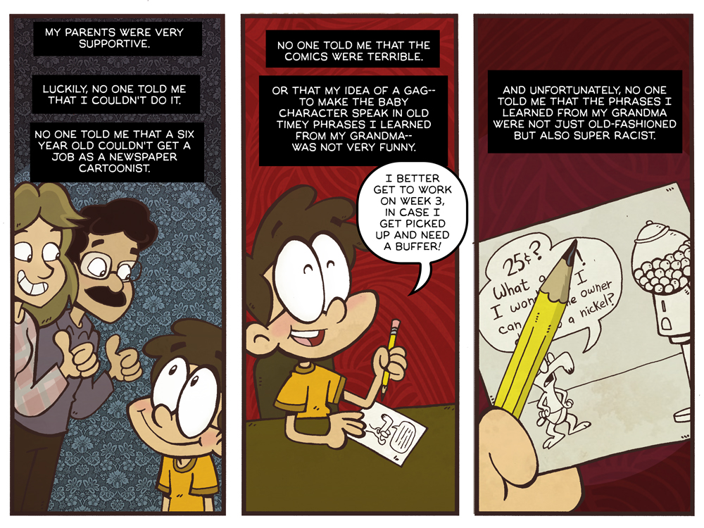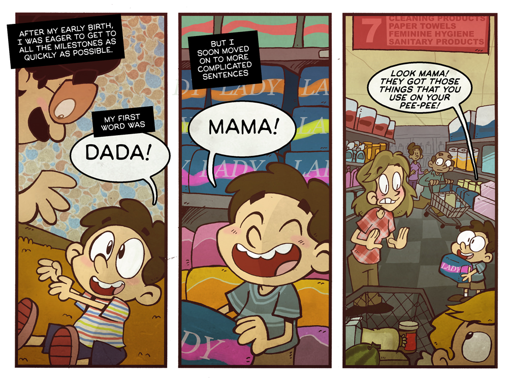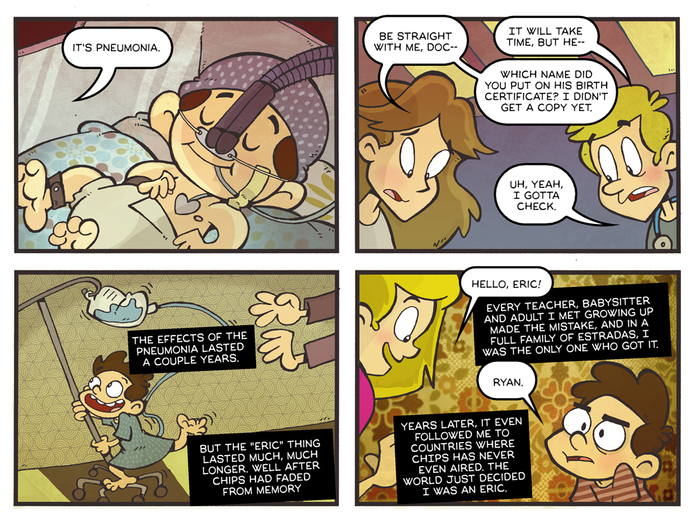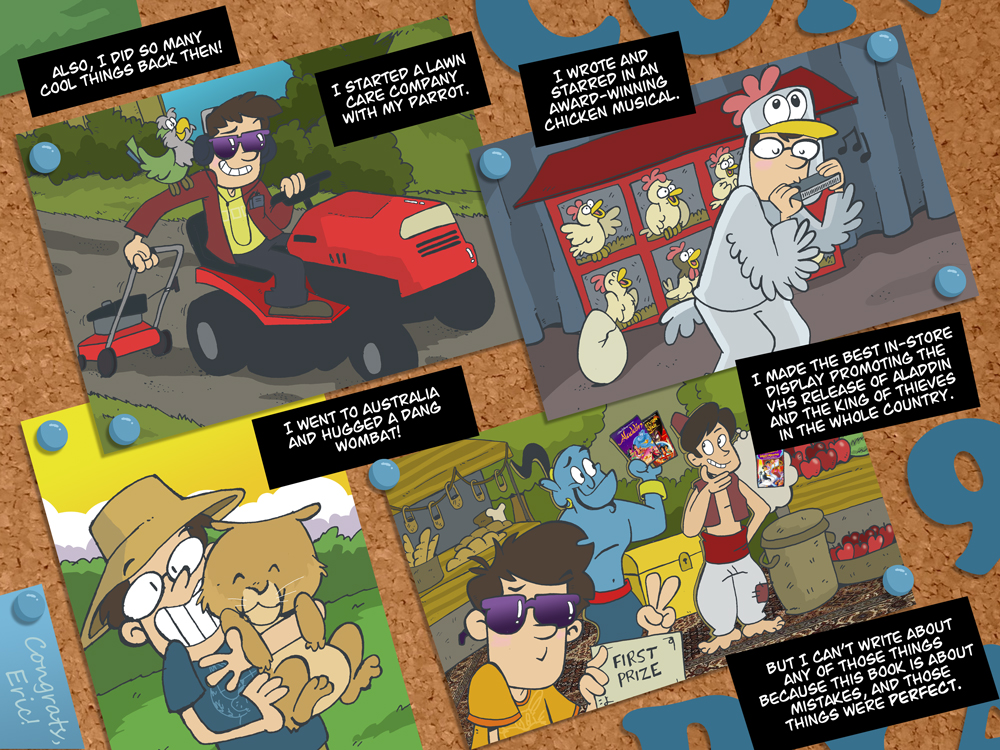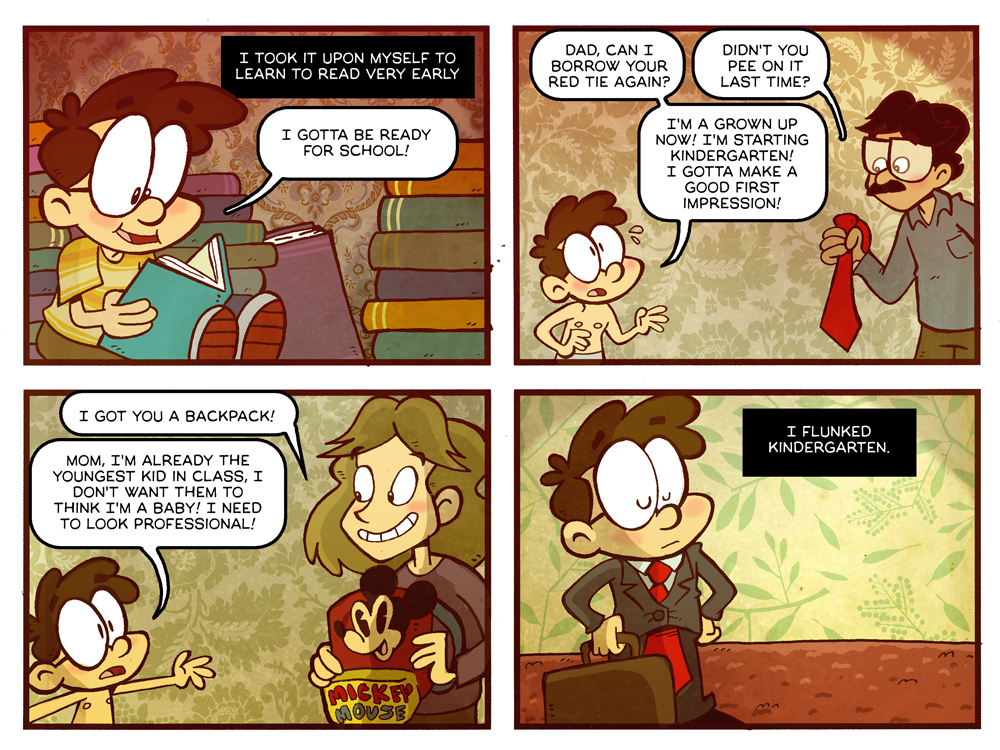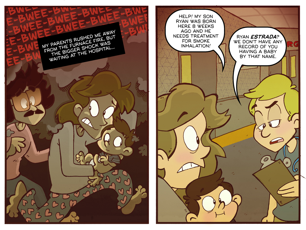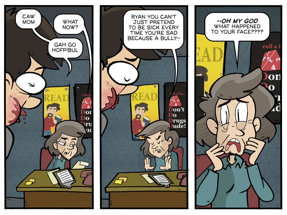 | Ryan Made Mistakes is a selection of stories about the dumb things I did as a kid. It was originally published as a daily webcomic for Hiveworks. |