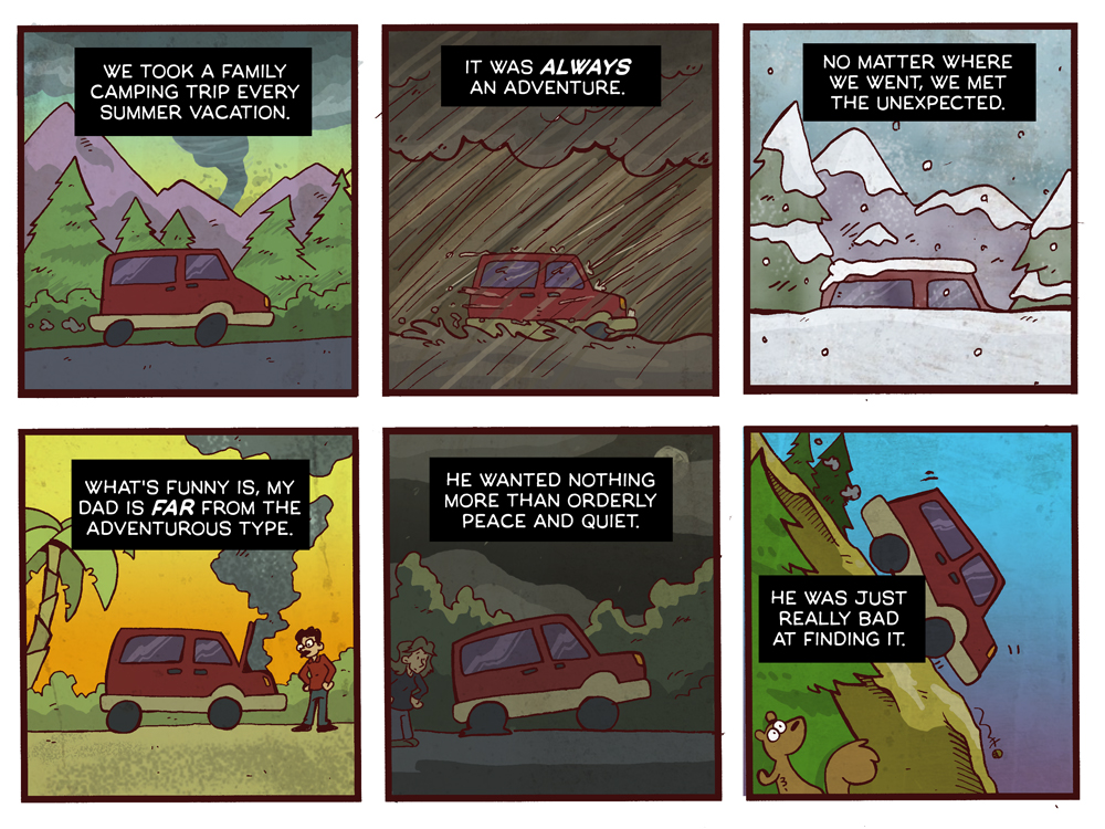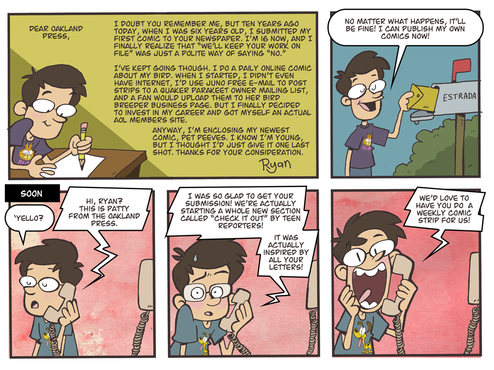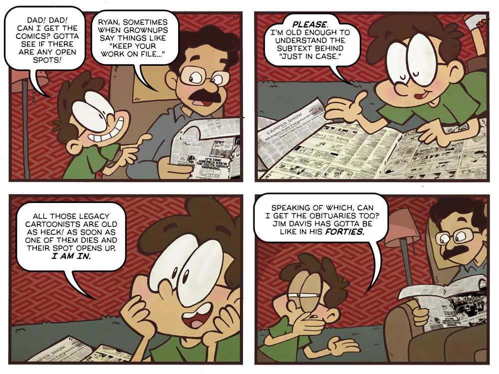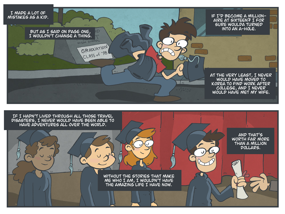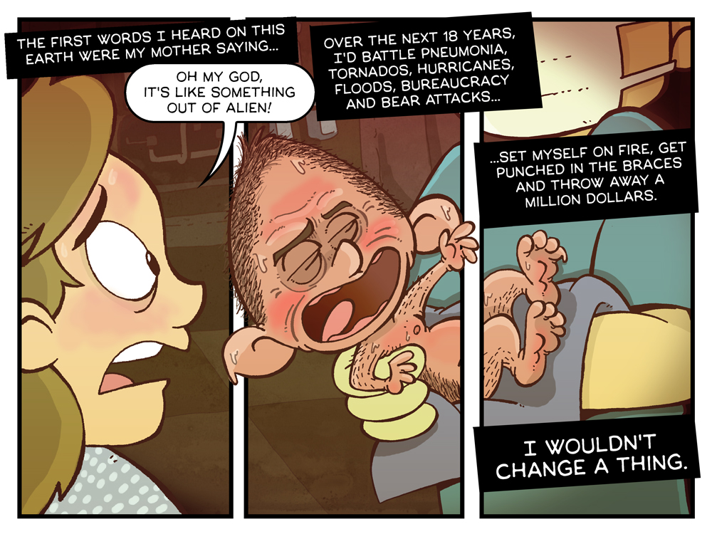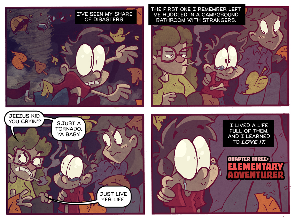| Ryan Made Mistakes is a selection of stories about the dumb things I did as a kid. It was originally published as a daily webcomic for Hiveworks. |